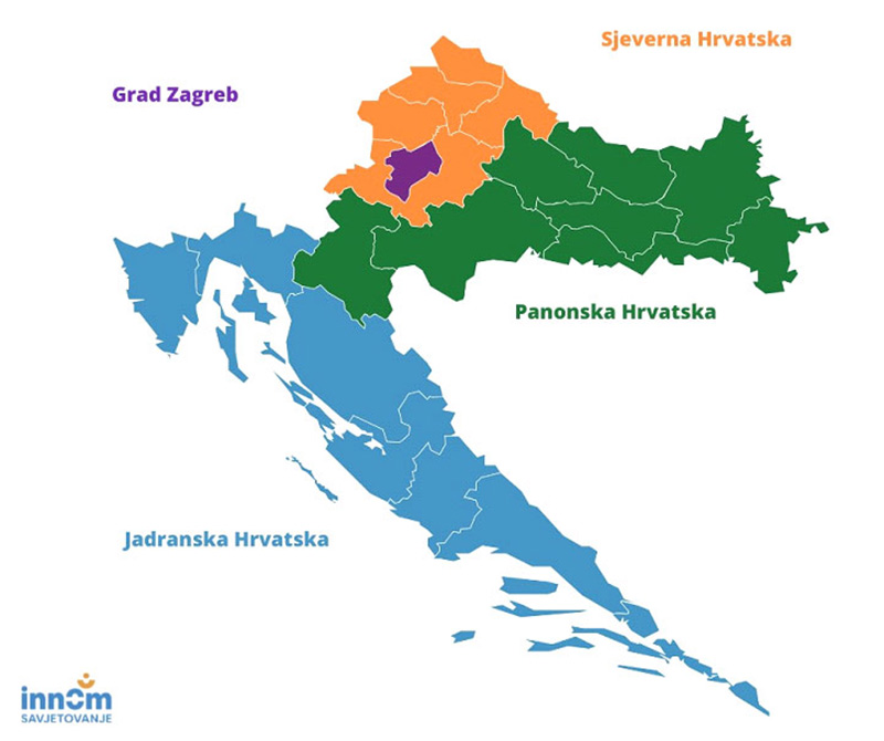 - Prihvatljiv prijavitelj mora djelovati u području jednog ili više RLV predmetnih NUTS 2 regija (Panonska, Jadranska ili Sjeverna Hrvatska).